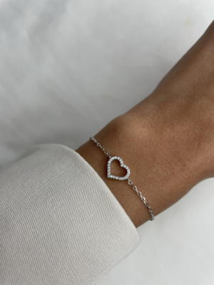 צמיד לב חלול משובץ – כסף 925