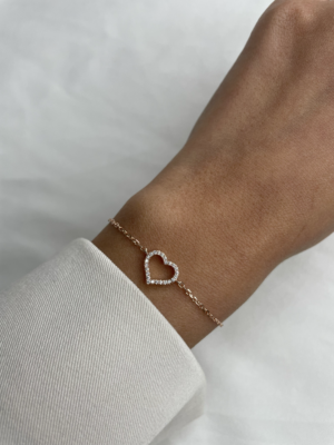 צמיד לב חלול משובץ – רוז גולד 925