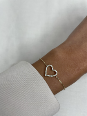צמיד לב משובץ – זהב 925