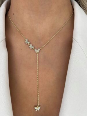 שרשרת פרפרים נופלת – 925 ציפוי זהב