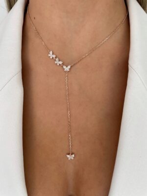 שרשרת פרפרים נופלת – 925 רוז גולד