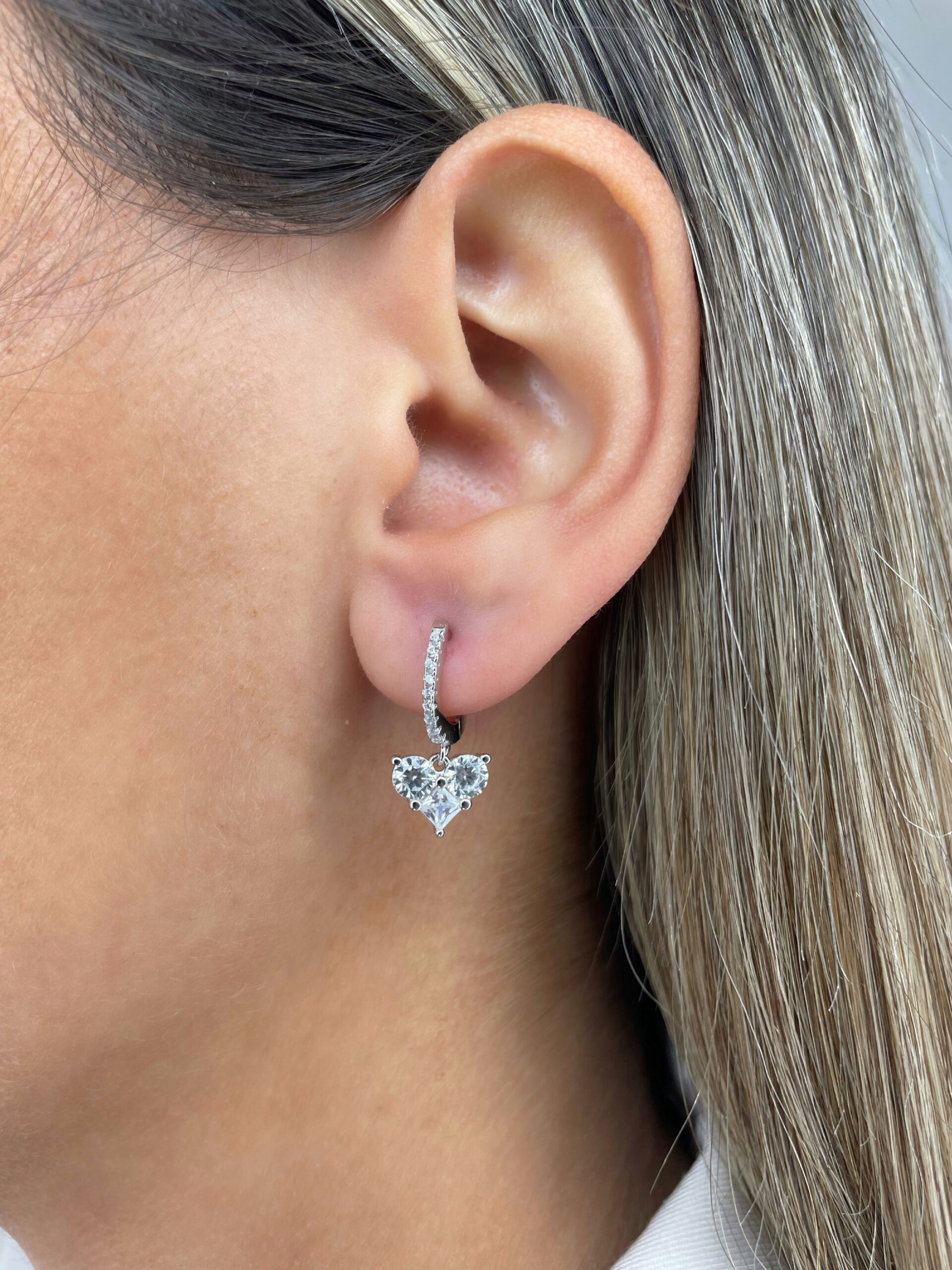 זוג עגילי חישוק משובצים תליון לב – 925 כסף