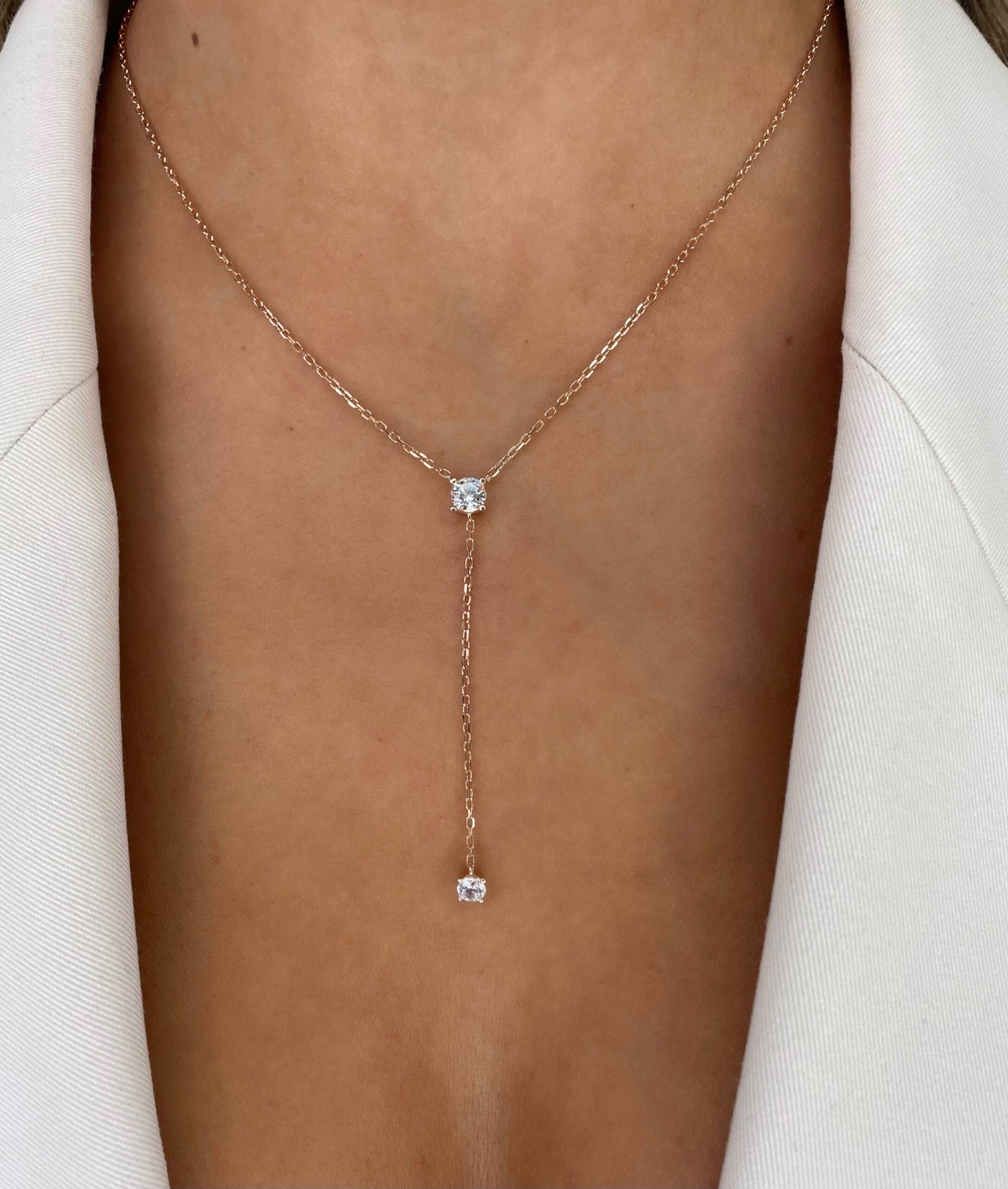 שרשרת זרקונים נופלת – 925 רוז גולד
