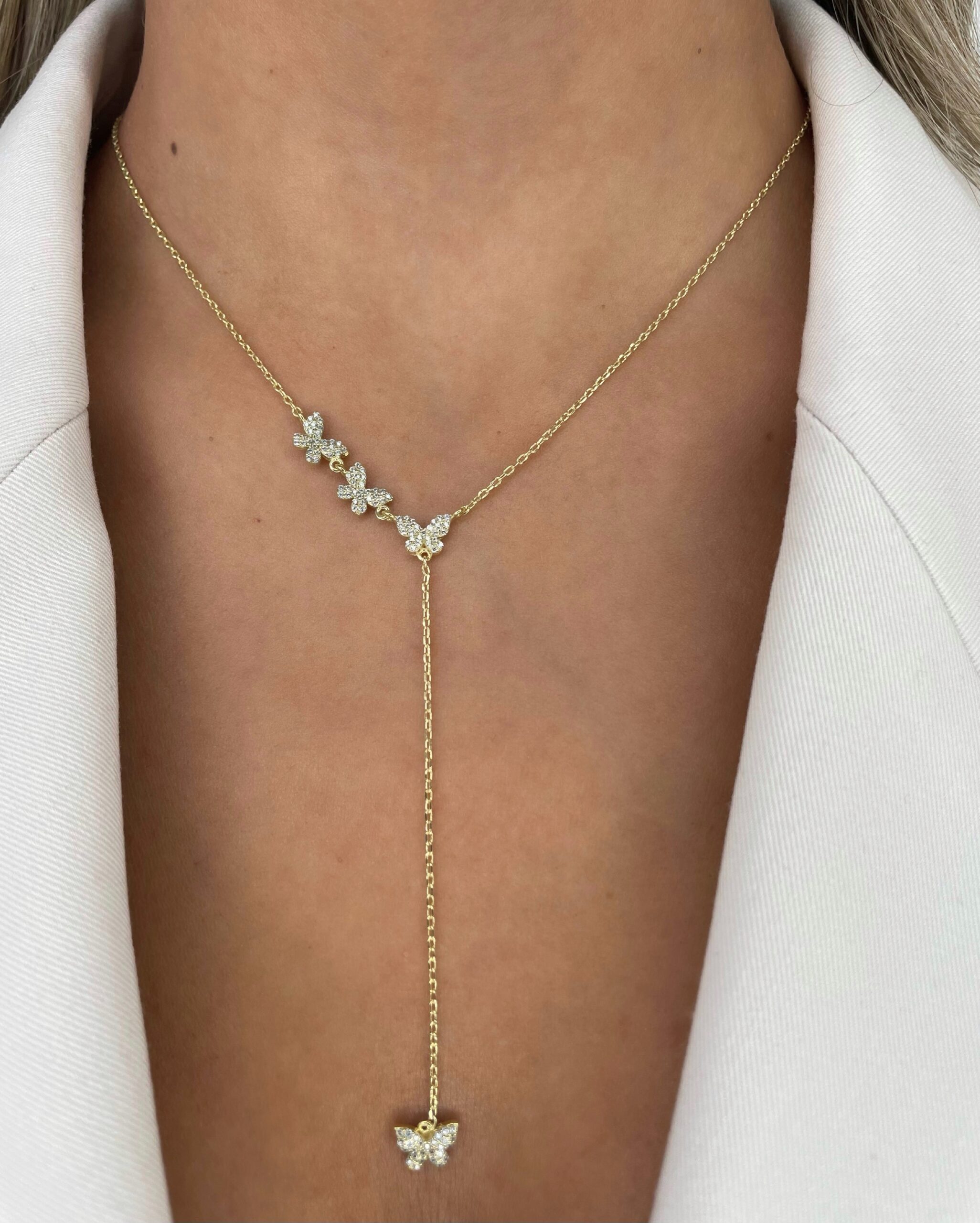 שרשרת פרפרים נופלת – 925 ציפוי זהב