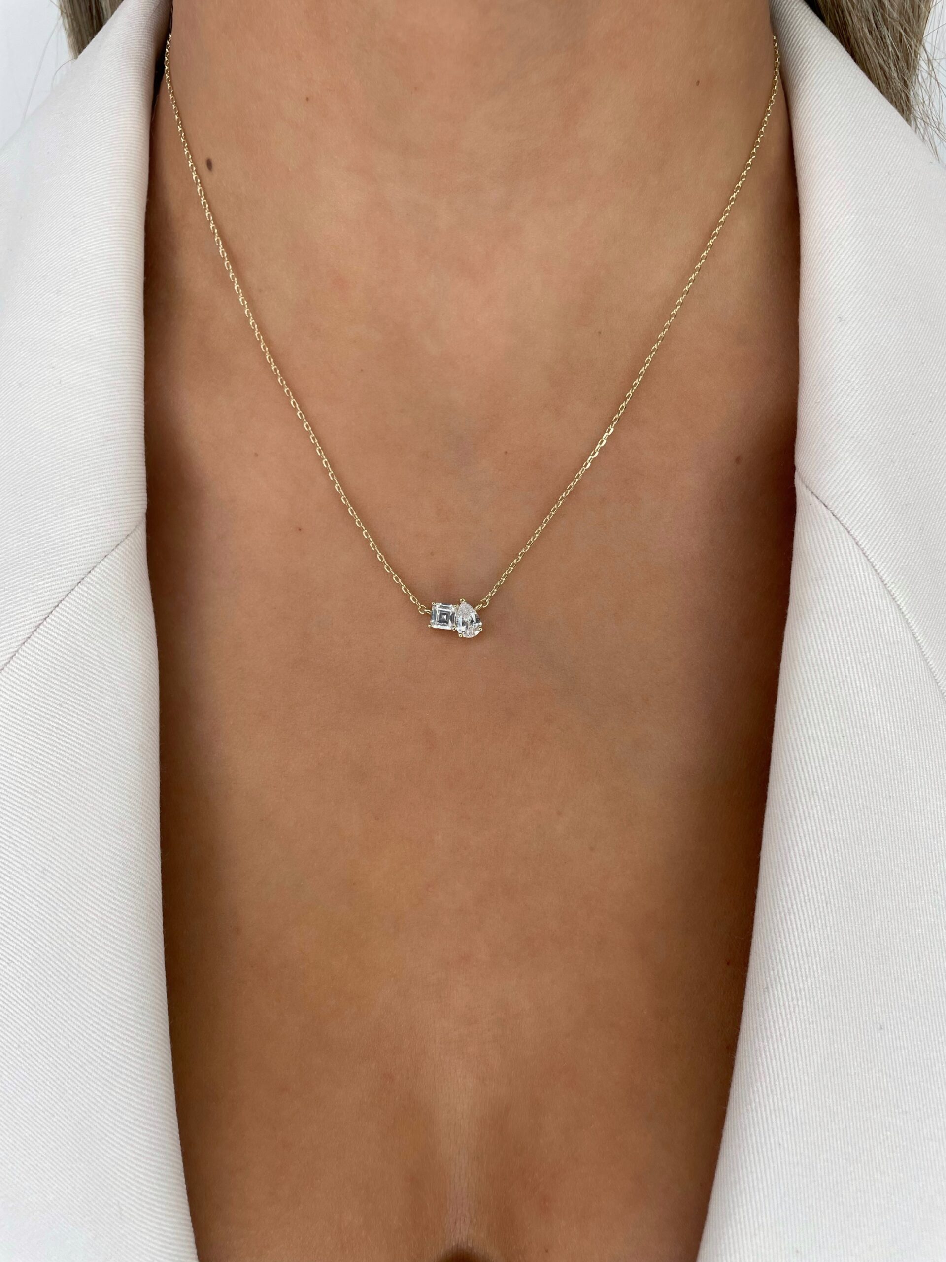 שרשרת שתי אבנים מחוברות - 925 ציפוי זהב quantity