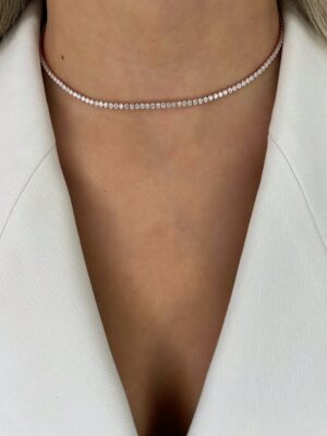 שרשרת צמודה דקה זרקונים – 925 רוז גולד