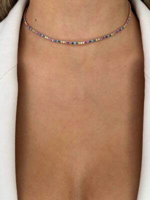 שרשרת צמודה אבנים צבעוניות – 925 כסף