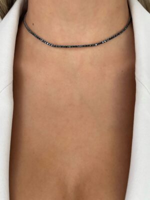שרשרת צמודה דקה זרקונים שחורים – 925