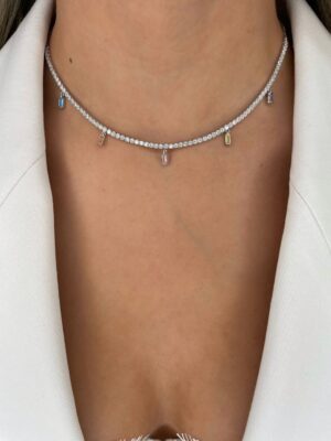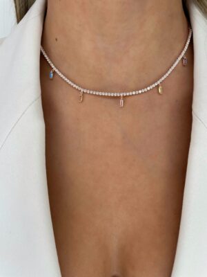 שרשרת צמודה דקה עם זרקונים צבעוניים – 925