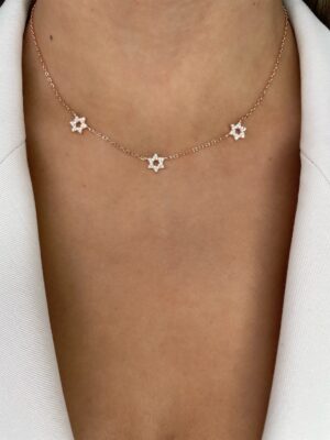 שרשרת שלושה תליוני מגן דוד 925-בציפוי רוז גולד