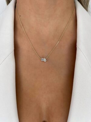 שרשרת שתי אבנים מחוברות – 925 ציפוי זהב