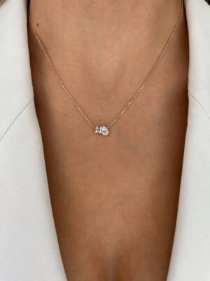 שרשרת שתי אבנים מחוברות – 925 רוז גולד